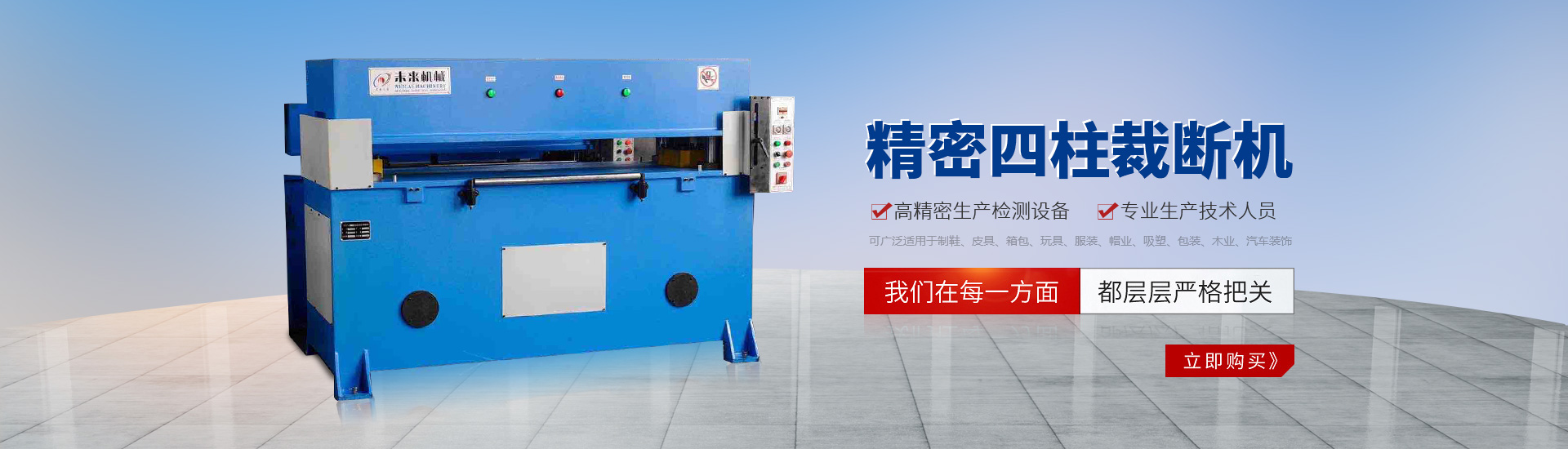 公司專業(yè)制造l 2T一25T液壓搖臂式裁斷機(jī):25T一30T液壓平面式裁斷機(jī);25T一30T液壓四柱龍門(mén)移動(dòng)式裁斷機(jī);25T一100T液壓四柱平面式裁斷機(jī):30T一100T精密四柱式裁斷機(jī)(自動(dòng)進(jìn)料);100T一200T液壓四柱下壓式裁斷機(jī)(自動(dòng)進(jìn)料)和客戶要求的特型裁斷機(jī)械系列。產(chǎn)品規(guī)格齊全,可廣泛適用于制鞋、皮具、箱包、玩具、服裝、帽業(yè)、吸塑、包裝、木業(yè)、汽車裝飾等行業(yè)。